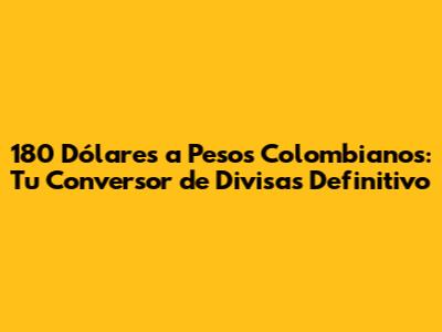 ¿Estás buscando convertir 180 dólares a pesos colombianos? ¡Perfecto, llegaste al lugar indicado! En esta guía completa, te proporcionaremos toda la información que necesitas para realizar esta conversión de manera precisa y eficiente. Además, te mantendremos al día con las últimas tasas de cambio, para que siempre obtengas el mejor valor por tu dinero. ¡Así que ponte cómodo, que empezamos!