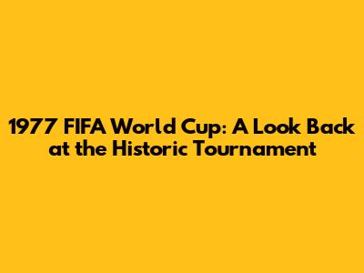 1977 FIFA World Cup: A Look Back At The Historic Tournament