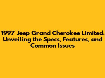 Hey there, Jeep enthusiasts! Ever wondered about the 1997 Jeep Grand Cherokee Limited? Well, buckle up because we're about to dive deep into everything this iconic SUV has to offer. We'll explore its specs, highlight its cool features, and even touch on some common problems you might encounter. Whether you're a seasoned Jeep owner or just starting your research, this guide is packed with info to get you up to speed. Let's get started, shall we?