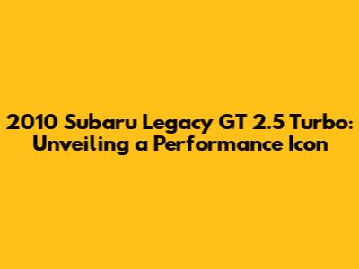 Alright, gearheads, let's dive headfirst into the world of the 2010 Subaru Legacy GT 2.5 Turbo! This car is a bit of a legend, packing a punch with its turbocharged engine and offering a blend of practicality and performance that's hard to beat. If you're considering snagging one, or maybe you're already cruising in one, this article is your go-to guide. We'll explore the specs, highlight common issues, and give you the lowdown on what makes this car tick. So, buckle up, and let's get started!