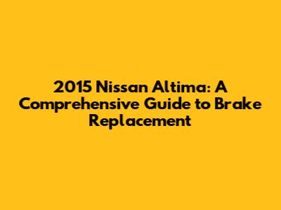 2015 Nissan Altima: DIY Brake Change Guide