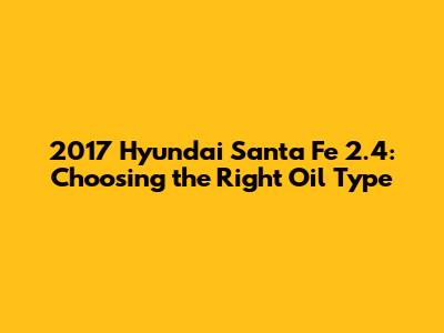Hey guys! So, you're wondering about the right oil type for your 2017 Hyundai Santa Fe 2.4? You've come to the right place. Choosing the correct oil is super important for keeping your engine running smoothly and extending its life. Let's dive into everything you need to know about selecting the best oil for your Santa Fe.