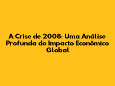 A Crise De 2008: Entenda O Impacto Econômico Global