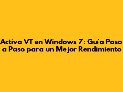 Activa VT En Windows 7: Guía Paso A Paso Para Un Mejor Rendimiento