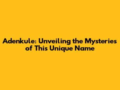 Adenkule: Unveiling The Mysteries Of This Unique Name