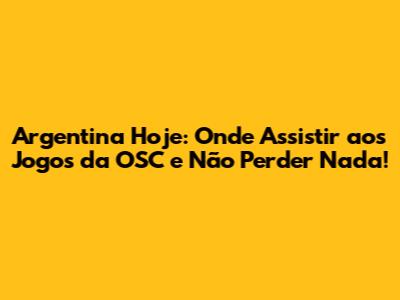 Argentina Hoje: Onde Assistir Aos Jogos Da OSC