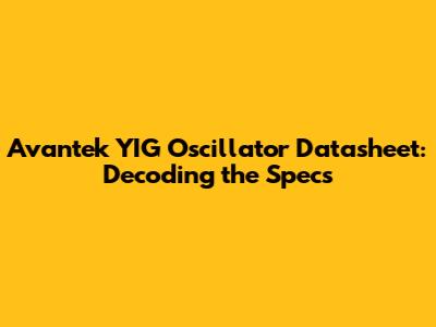 Hey guys! Ever stumbled upon an Avantek YIG oscillator datasheet and felt a little lost? Don't worry, you're not alone. These datasheets are packed with technical jargon, but fear not! This guide will break down the key elements of an Avantek YIG oscillator datasheet, making it easier for you to understand the specs, applications, and performance characteristics. Let's dive in and demystify these important components! We'll cover everything from frequency range and tuning characteristics to power output and phase noise. By the end, you'll be able to confidently navigate these datasheets and make informed decisions.