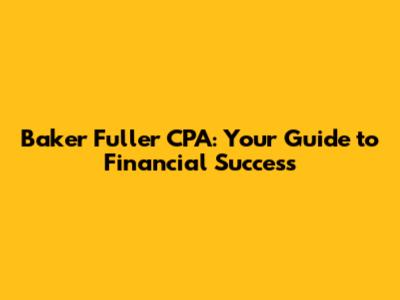 Baker Fuller CPA: Your Guide To Financial Success