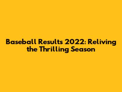Baseball Results 2022: Reliving The Thrilling Season