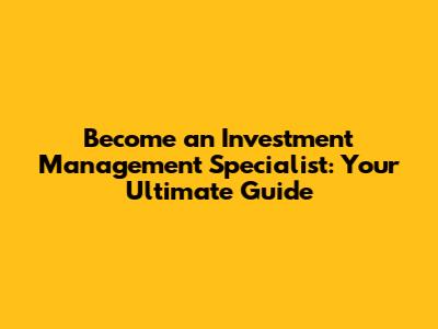 Become An Investment Management Specialist: Your Guide