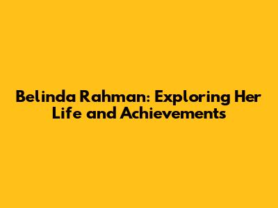 Belinda Rahman: Exploring Her Life And Achievements