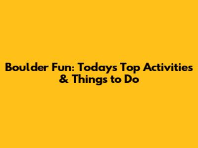 Boulder Fun: Today's Top Activities & Things To Do
