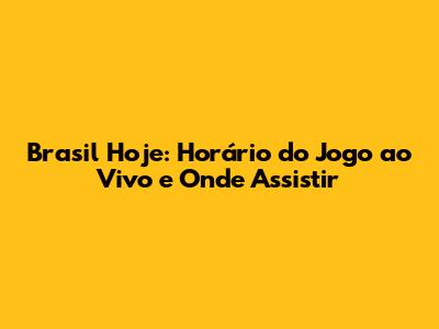 Brasil Hoje: Horário Do Jogo Ao Vivo E Onde Assistir