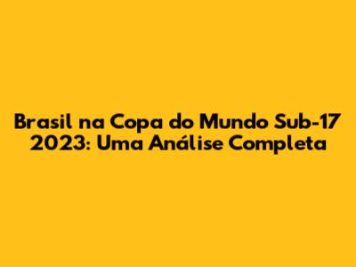 Brasil Na Copa Do Mundo Sub-17 2023: Uma Análise Completa
