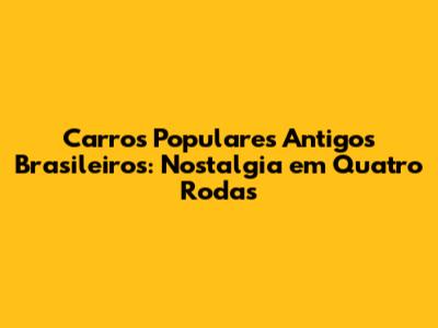 Carros Populares Antigos Brasileiros: Nostalgia Em Quatro Rodas