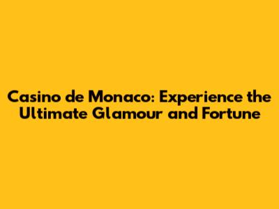 Casino De Monaco: Glamour & Fortune