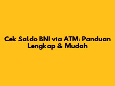 Cek Saldo BNI Via ATM: Panduan Lengkap & Mudah