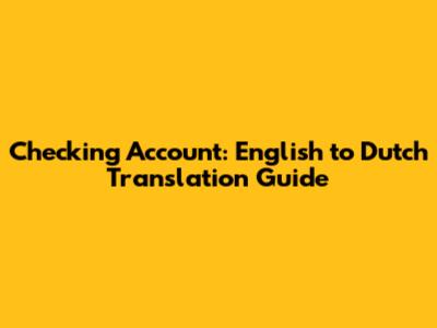 Checking Account: English To Dutch Translation Guide