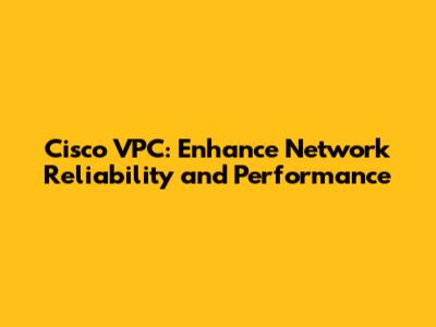 Cisco VPC: Enhance Network Reliability And Performance
