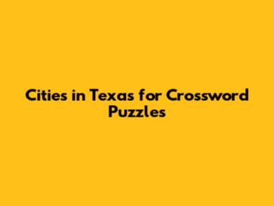 Cities In Texas For Crossword Puzzles
