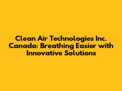 Clean Air Technologies Inc. Canada: Solutions For A Breath Of Fresh Air