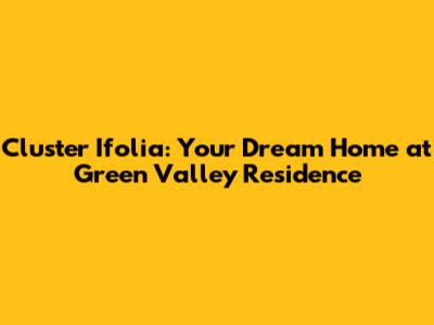 Hey guys! Ever dreamt of living in a place that feels like a permanent vacation? Well, let me tell you about Cluster Ifolia at Green Valley Residence. This place is seriously something else, offering a blend of modern living and serene natural beauty that's hard to find. If you're on the hunt for a new home or an investment that promises a great return, you need to check out what Cluster Ifolia has to offer. We're talking about a neighborhood designed with your comfort and lifestyle in mind, featuring top-notch facilities and a strategic location that makes everyday life a breeze. So, buckle up, because we're about to dive deep into why Cluster Ifolia might just be the perfect spot for you and your family.