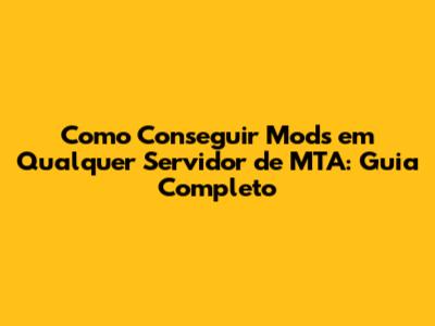 Como Conseguir Mods Em Qualquer Servidor De MTA: Guia Completo