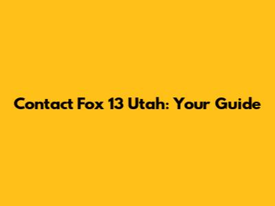 Contact Fox 13 Utah: Your Guide