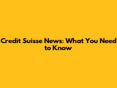 Credit Suisse News: What You Need To Know