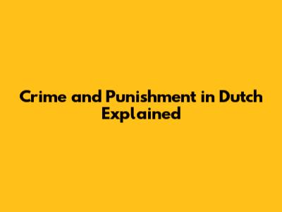Crime And Punishment In Dutch Explained