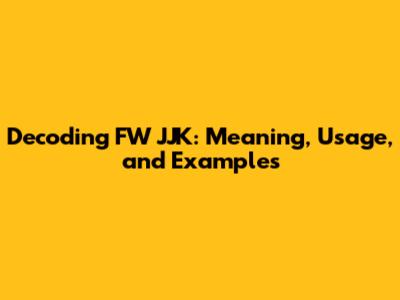 Decoding FW JJK: Meaning, Usage, And Examples