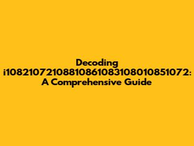 Decoding I10821072108810861083108010851072: A Comprehensive Guide