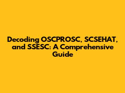 Decoding OSCPROSC, SCSEHAT, And SSESC: A Comprehensive Guide