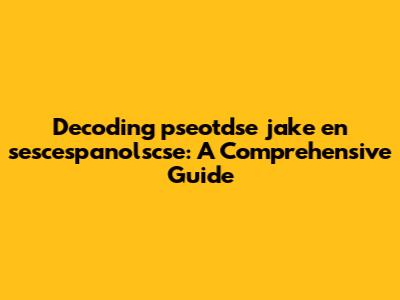 Decoding 'pseotdse Jake En Sescespanolscse': A Comprehensive Guide
