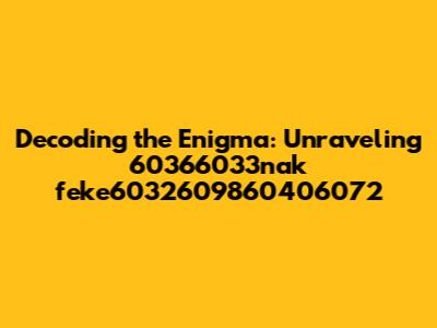 Decoding The Enigma: Unraveling 60366033nak Feke6032609860406072