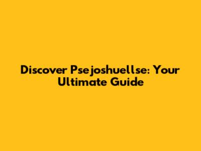 Discover Psejoshuellse: Your Ultimate Guide