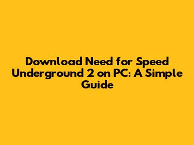 Download Need For Speed Underground 2 On PC: A Simple Guide