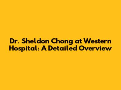 Dr. Sheldon Chong At Western Hospital: A Detailed Overview
