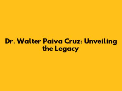 Dr. Walter Paiva Cruz: Unveiling The Legacy