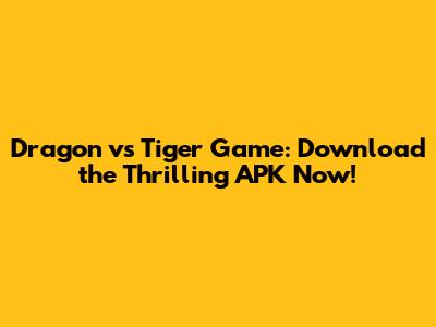 Dragon Vs Tiger Game: Download The Thrilling APK Now!