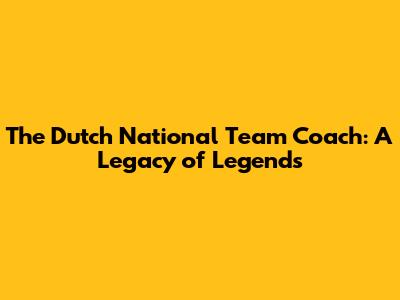 Dutch National Team Coach: Who's In Charge?