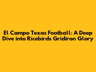 El Campo Texas Football: A Deep Dive Into Ricebirds Gridiron Glory