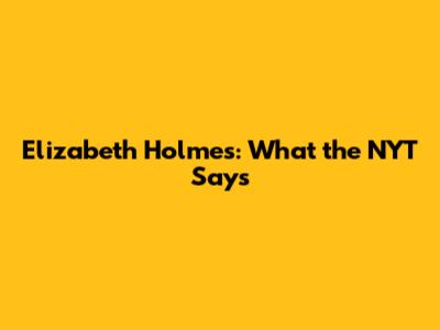 Elizabeth Holmes: What The NYT Says