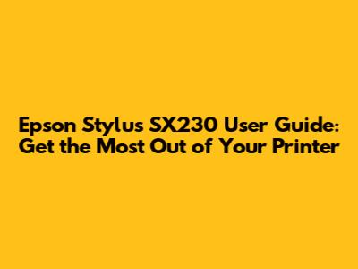 Epson Stylus SX230 User Guide: Get The Most Out Of Your Printer
