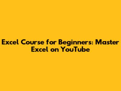 Excel Course For Beginners: Master Excel On YouTube