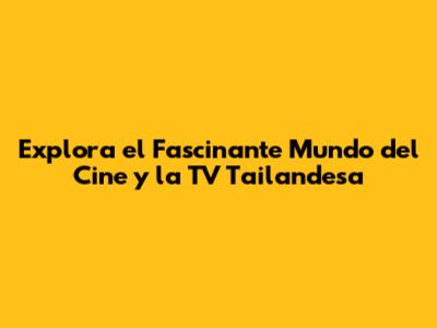 Explora El Fascinante Mundo Del Cine Y La TV Tailandesa