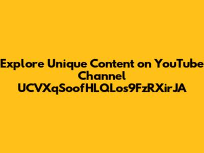 Explore Unique Content On YouTube Channel UCVXqSoofHLQLos9FzRXirJA