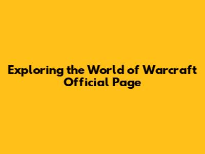 Exploring The World Of Warcraft Official Page