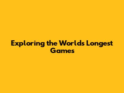 Exploring The World's Longest Games