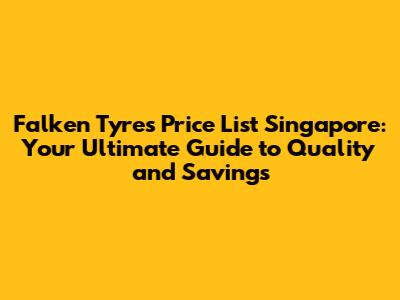 Falken Tyres Price List Singapore: Where to Find the Best Deals